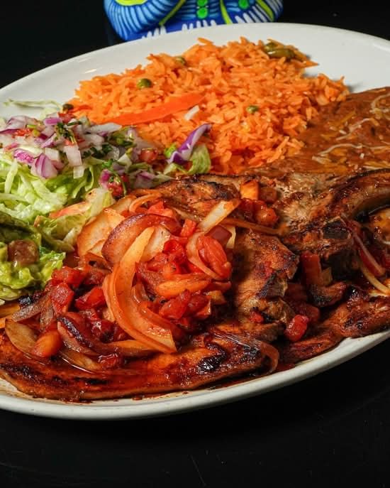 Grilled chicken breast seasoned and covered with special sauce. Served with rice, pico de gallo, guacamole salad and flour or corn tortillas