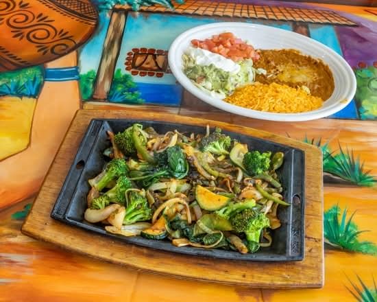 Your choice of tender sliced grilled beef or chicken, bell peppers and onions, covered with melted cheese on top. served with guacamole salad, flour tortillas and Mexican rice and beans